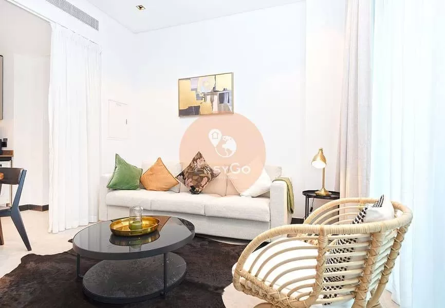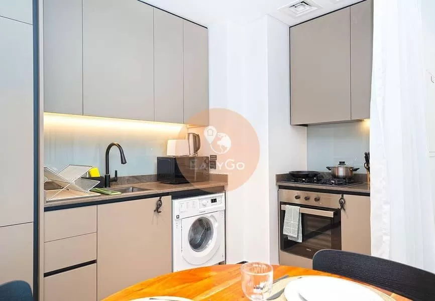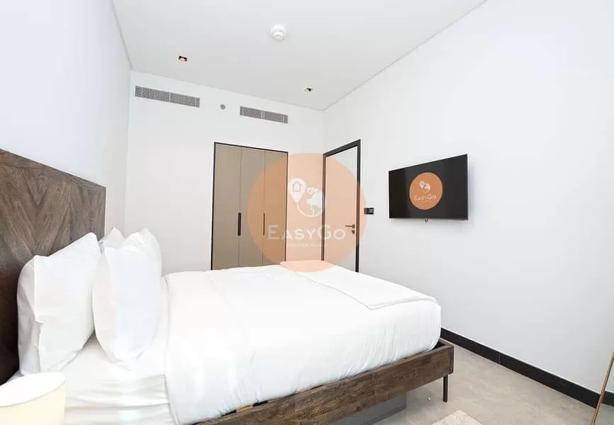 Relax in a spacious master bedroom with a king-sized bed and en-suite bathroom. The fully equipped kitchen features top-of-the-line European appliances and integrated wooden cabinets.