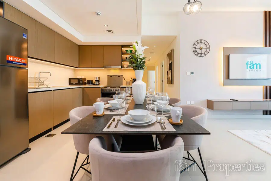 Our spaciously designed 3-bedroom + maids room apartment at Burj Crown ensures your comfort. Revel in the elegant furnishings, fully-equipped kitchen, and contemporary decor for a seamless and enjoyable living experience.