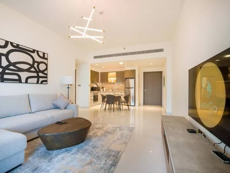 The 1-bedroom apartment in Grand Bleu Tower 2 offers a perfect blend of modern design and luxurious comfort. Inside, you'll find spacious open-plan living areas with high ceilings and floor-to-ceiling windows, flooding the space with natural light and offering breathtaking views. The sleek kitchen is fully equipped with top-of-the-line appliances and stylish cabinetry. The bedroom is generously sized with ample closet space, and the modern bathroom features elegant fixtures. Premium finishes, high-end flooring, and attention to detail throughout make this apartment the perfect urban retreat.
