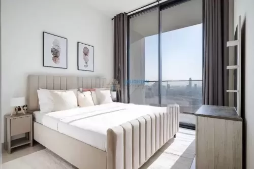 The generously sized bedroom includes built-in wardrobes for ample storage and large windows that flood the room with natural light, creating a calm and inviting space. The contemporary bathroom showcases premium fixtures with a minimalist design.