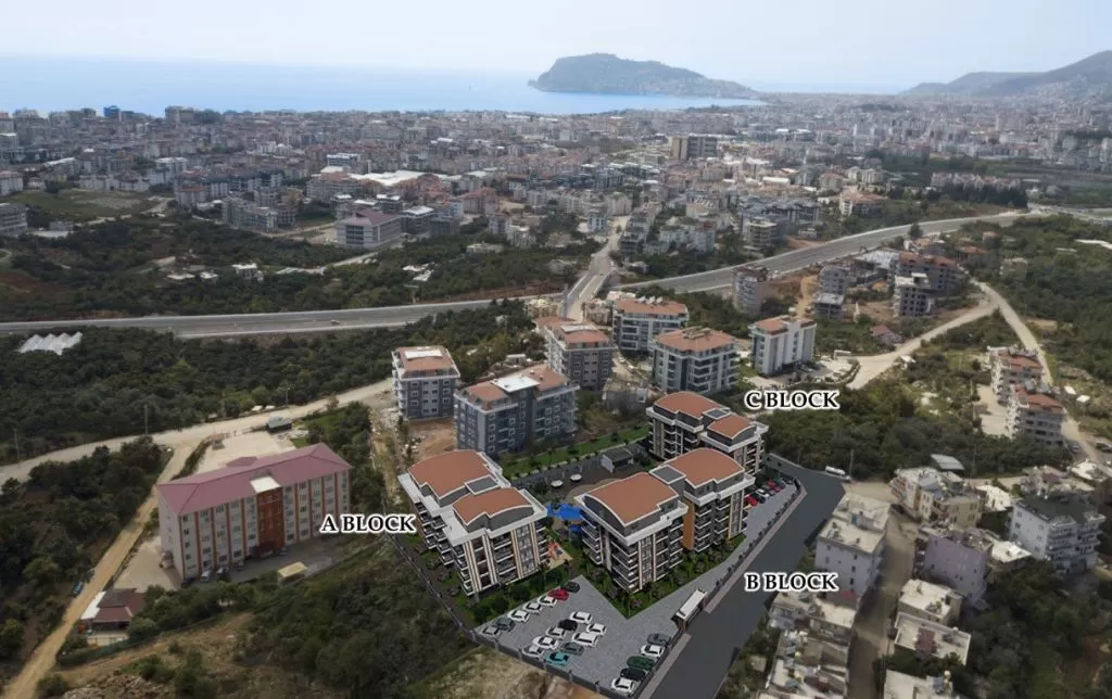 Project location - 1900 meters from the beach and 1000 meters from the center of Oba. The construction of this project began at the end of 2021, the completion date is planned for March 2023. The developer provides interest-free installments until the end of construction with an initial payment of 30% of the total cost of the apartments.