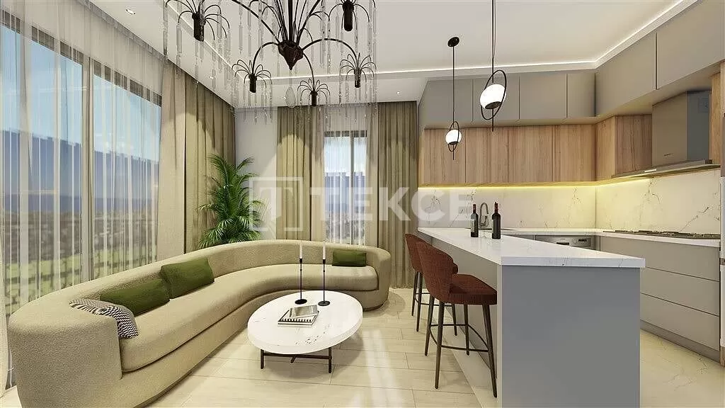Apartments for sale in Alanya, Turkey are within walking distance of social amenities. Also, they are located 2 km from the sea, 4.7 km from Seapark & Dolphinpark, 14.5 km from Alanya center, 17.4 km from Alanyum Shopping Mall, and 52 km from Alanya-Gazipaşa Airport.