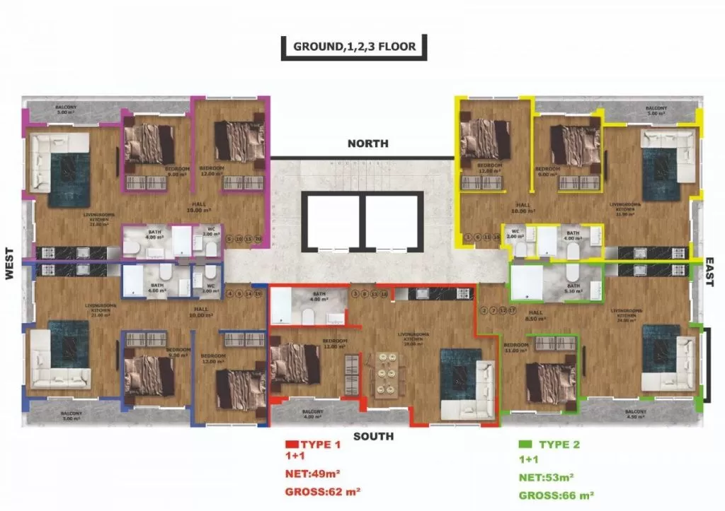 1 Bedroom 1 Bathrooms F/F 62 m² / 668 FT For Sale