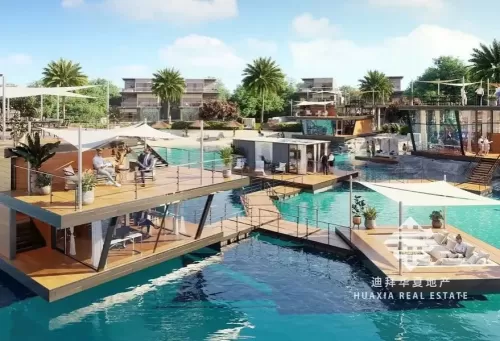 Huaxia Real Estate proudly presents this exquisite 5-bedroom + Maid townhouse in the picturesque Santorini community at DAMAC Lagoons.