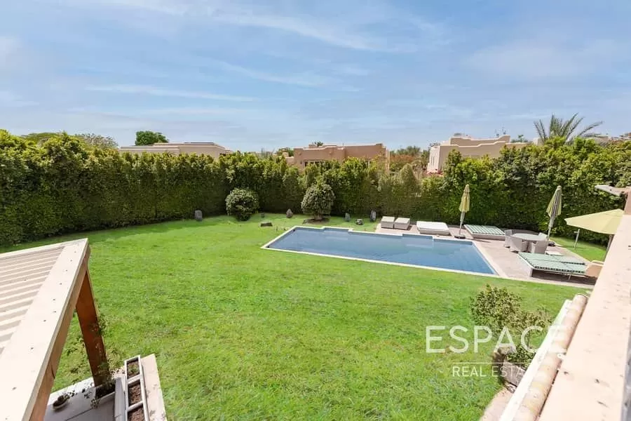 Espace Real Estate is pleased to present the beautiful family home on one of the biggest plots the Ranches offers. This Terranova property boasts acres of space inside (over 5k sq ft) and out (almost 14k sq ft). There is a closed kitchen, separate dining and lounge room, dirty kitchen, 1 bed and maids. Upstairs are 3 double beds with a family area plus a dressing room. Both can be kept as is or converted into a 5th and 6th bedrooms. With classic upgrades, the property is ready for a family to move in or provides a blank canvas to further enhance. The property is surrounded by mature trees thus creating total privacy as you enjoy the private pool and entertainment area.